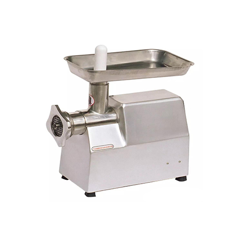 內螺絲線設計和方形進口料口絞肉套,有利于待絞肉料的快速推進。肉盤進肉孔不僅有保護罩,而且肉盤用螺絲緊固再機身上。保證了適用者再任何適用條件下,手指不能伸進絞肉套進料口。采用齒輪箱變速,內部結構緊湊;安裝和維修方便。絞肉套,采用兩個大鎖緊螺母固定,帶有手柄,拆裝方便;齒輪箱,法蘭盤,和絞肉套三重密封,確保潤滑油絕對不會進入絞肉套內。接觸食品的零件都采用高級不銹鋼材料制作,且線條流暢,抑郁清潔,且外形美觀。絞肉機更大能提供約800kg/h的生產能力。
